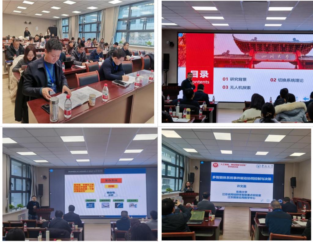 研讨会上,四川大学杨鑫松教授、中国矿业大学朱松教授、东南大学许文盈教授和杨绍富教授、中国石油大学(华东)王健教授、中国地质大学(武汉)王雷敏教授、哈尔滨工业大学(威海)秦泗甜教授以及k1体育周立群教授和刘娜博士等多位专家学者围绕切换系统协同控制、忆阻系统理论及应用、多智能体系统协同控制与决策、复杂神经网络同步控制、神经动力学优化理论和算法等介绍了各自领域的最新研究进展及研究成果。参会人员认真听取报告,并从科学问题、交叉合作和应用研究等方面与各位报告人展开了热烈讨论。
