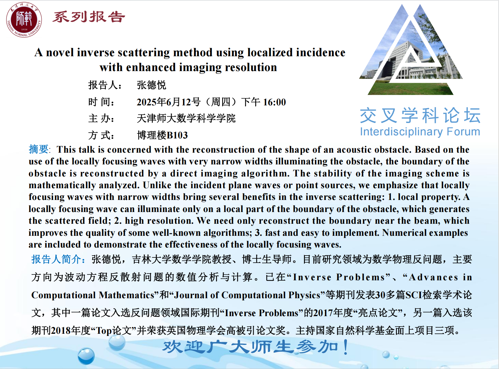 【预告】学术报告(2025-24)6月12日——A novel inverse scattering method using localized incidencewith enhanced imaging resolution