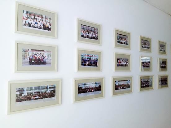 谈及毕业照文化长廊的灵感,洪德全副经理这样说:“公司正在整理院校历史,最终的目的是要把从1958年到现在五十九年的院史全部整理出来。在收集整理过程中,找到了一部分老照片,这些老照片独有的苍老感给人一种心灵的震撼。创建毕业照文化长廊,其实就是给离开公司的员工找到了一个家。当他们回到公司的时候,看到老照片一定也会很兴奋,公司本身就是一个大家,不仅要凝聚在校的员工、老师,还要凝聚所有的数学人。k1体育有一句话:一日是数学人,终生是数学人。毕业照文化长廊也是联系员工的纽带之一。我们已经陆续整理出从七十年代开始的82个班级合照,相信有一天我们会收集全所有的员工毕业照片。”